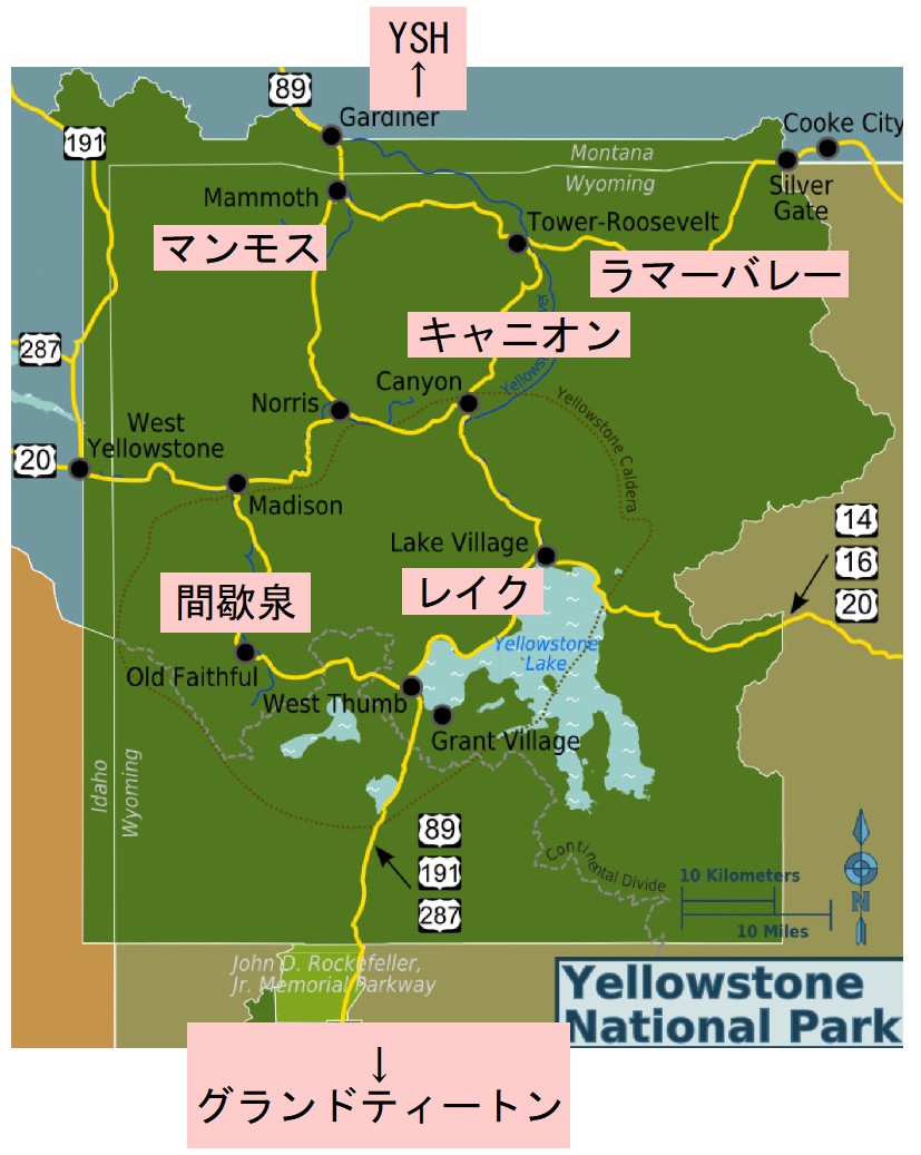 さて今日から本格的に公園内を回るので、いったんロッジを出ていろんなホテルを転々とする。以下のYSHはこのイエローストーンホライゾンズのロッジ