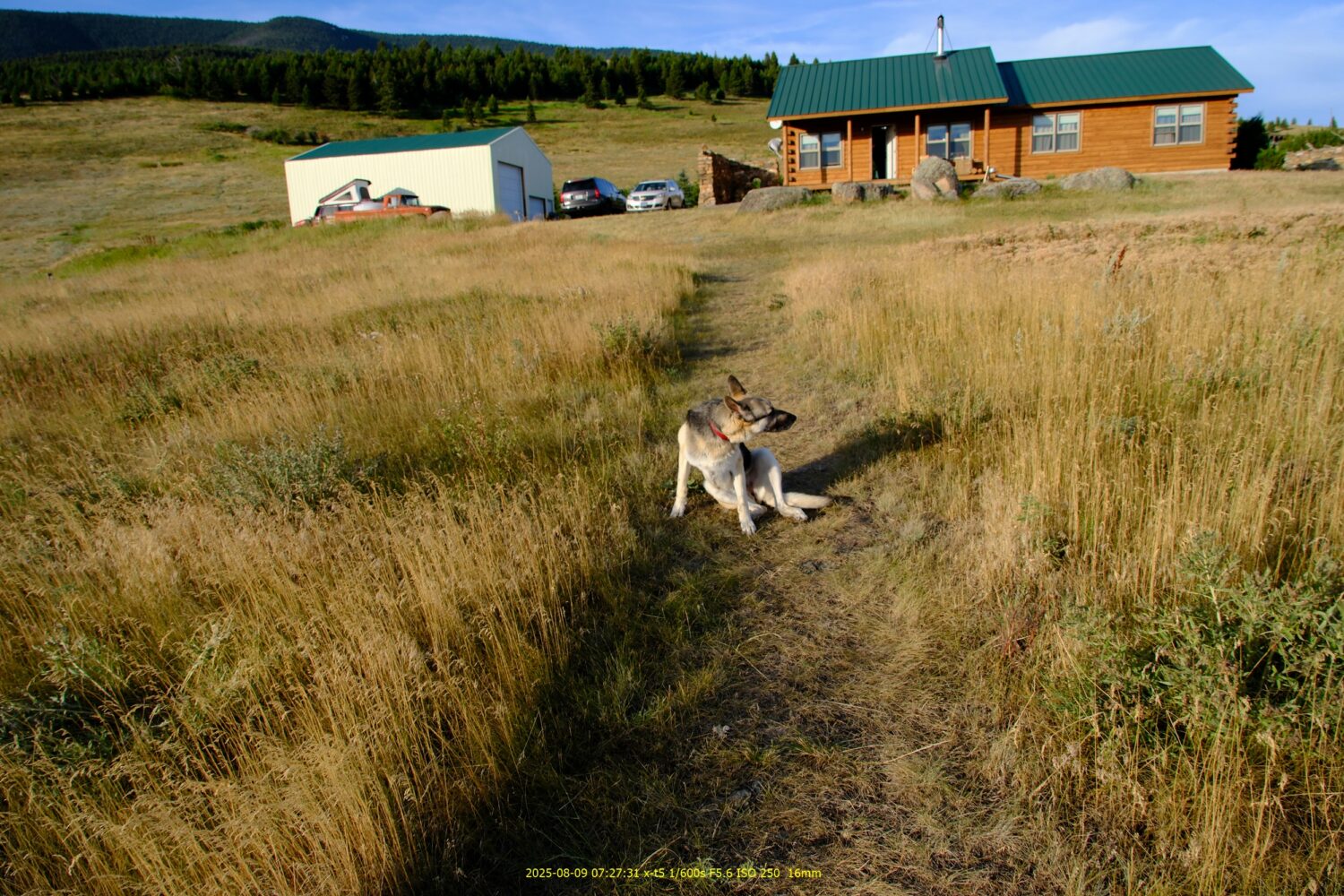 緑の屋根がデイビットの自宅。今朝はここで朝食を頂くが、すでに愛犬が我々をお出迎え。