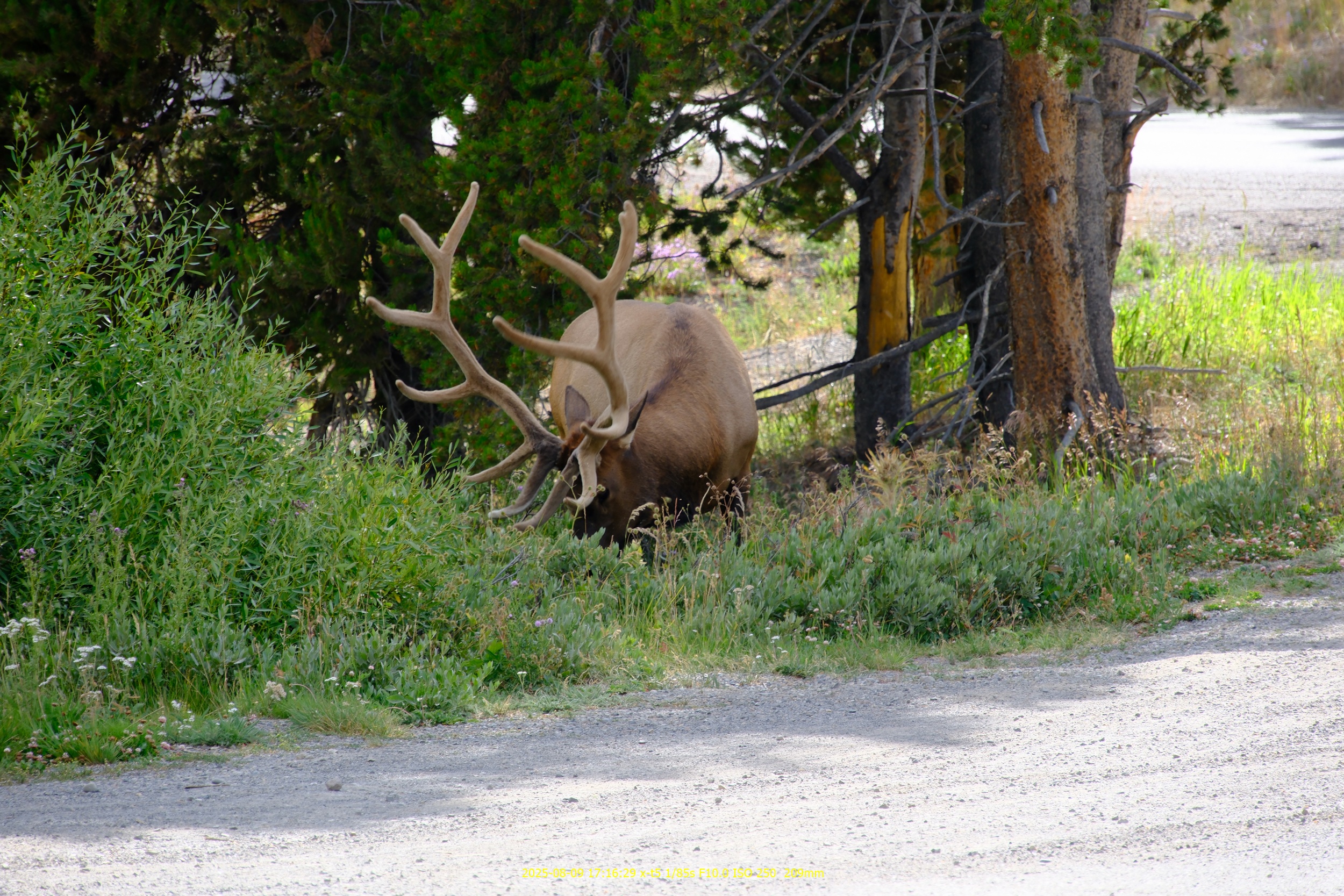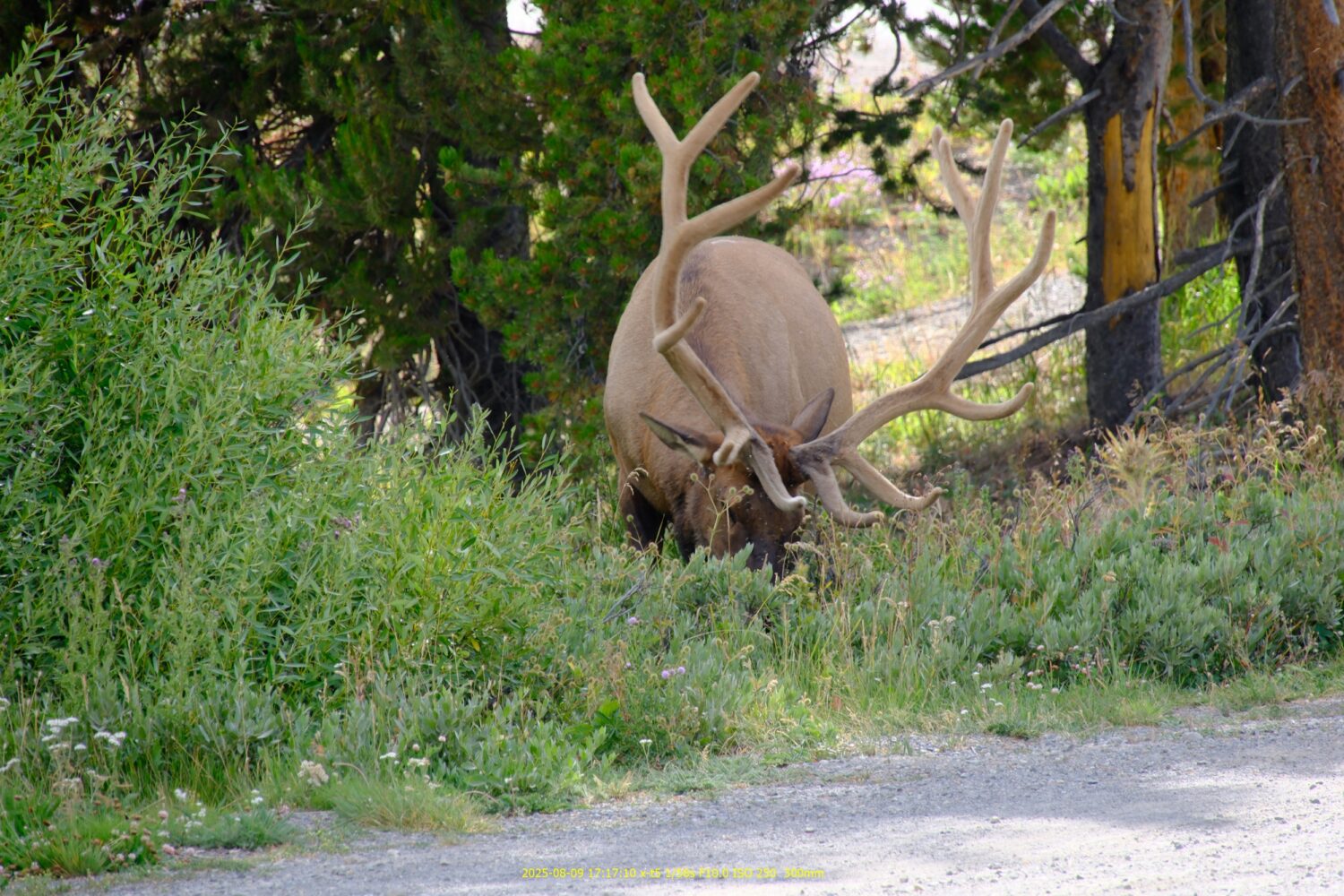 なんとデカい角を持ったエルクを発見。ここはホテルの駐車場だ(^^;)