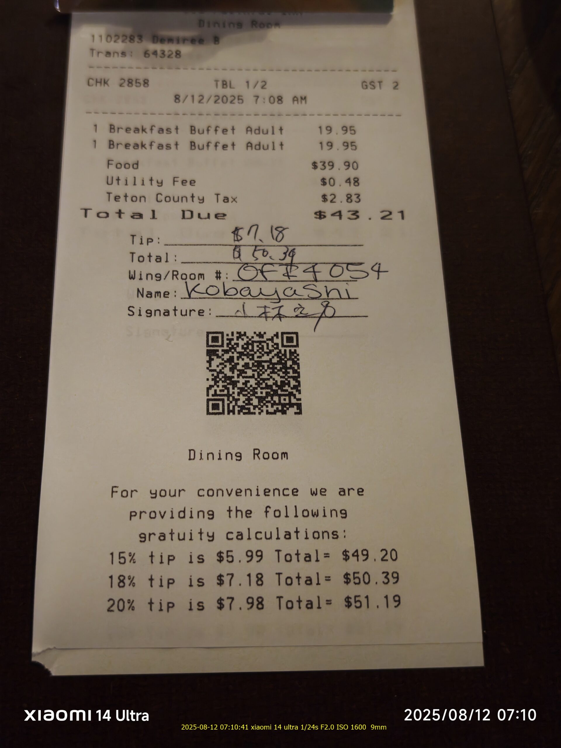 オールドフェイスフルでの朝食 まあこんなもんだろう・・