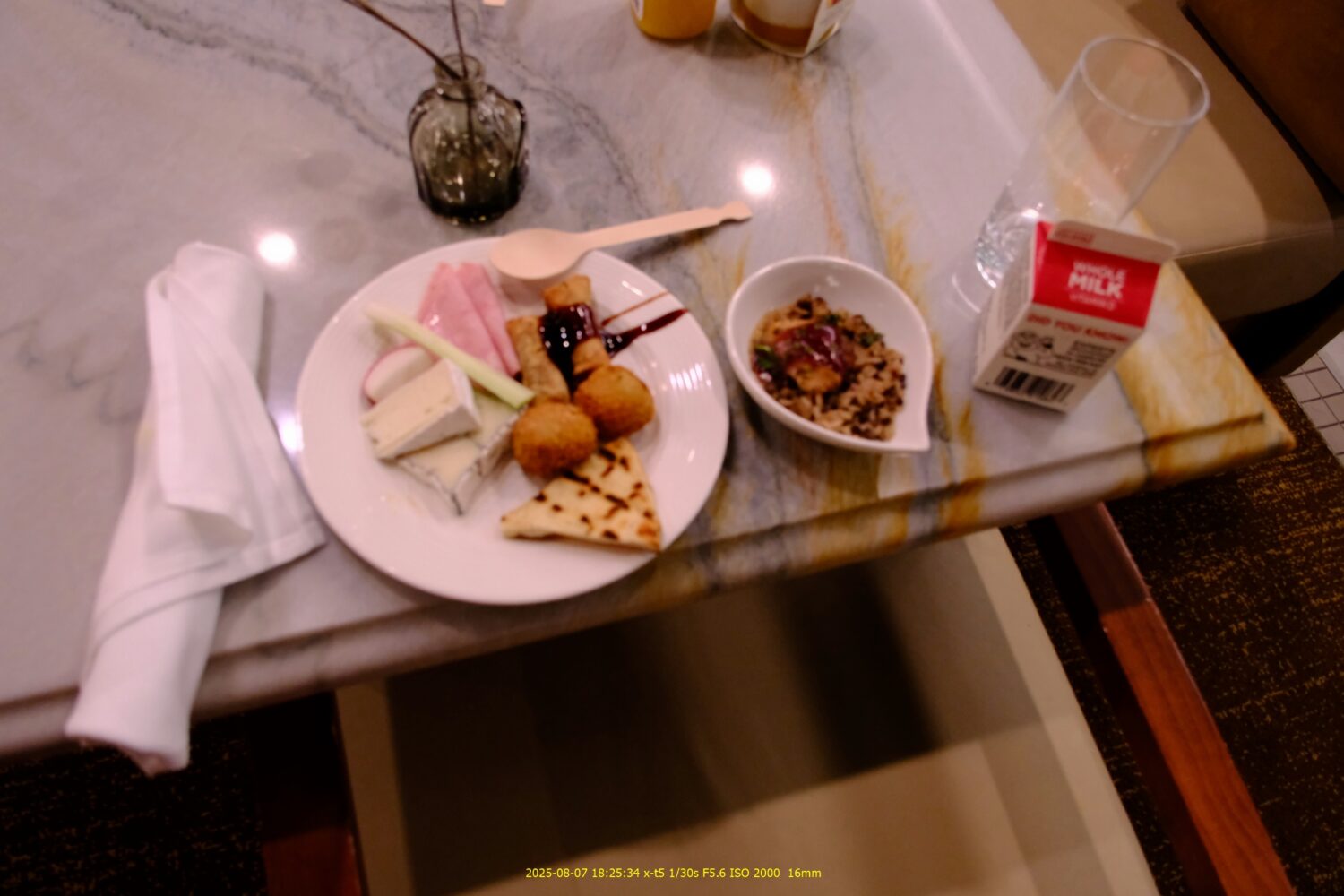 ホテルのラウンジでタダ飯。ちょっとしょぼかったが文句は言えない(^^;)