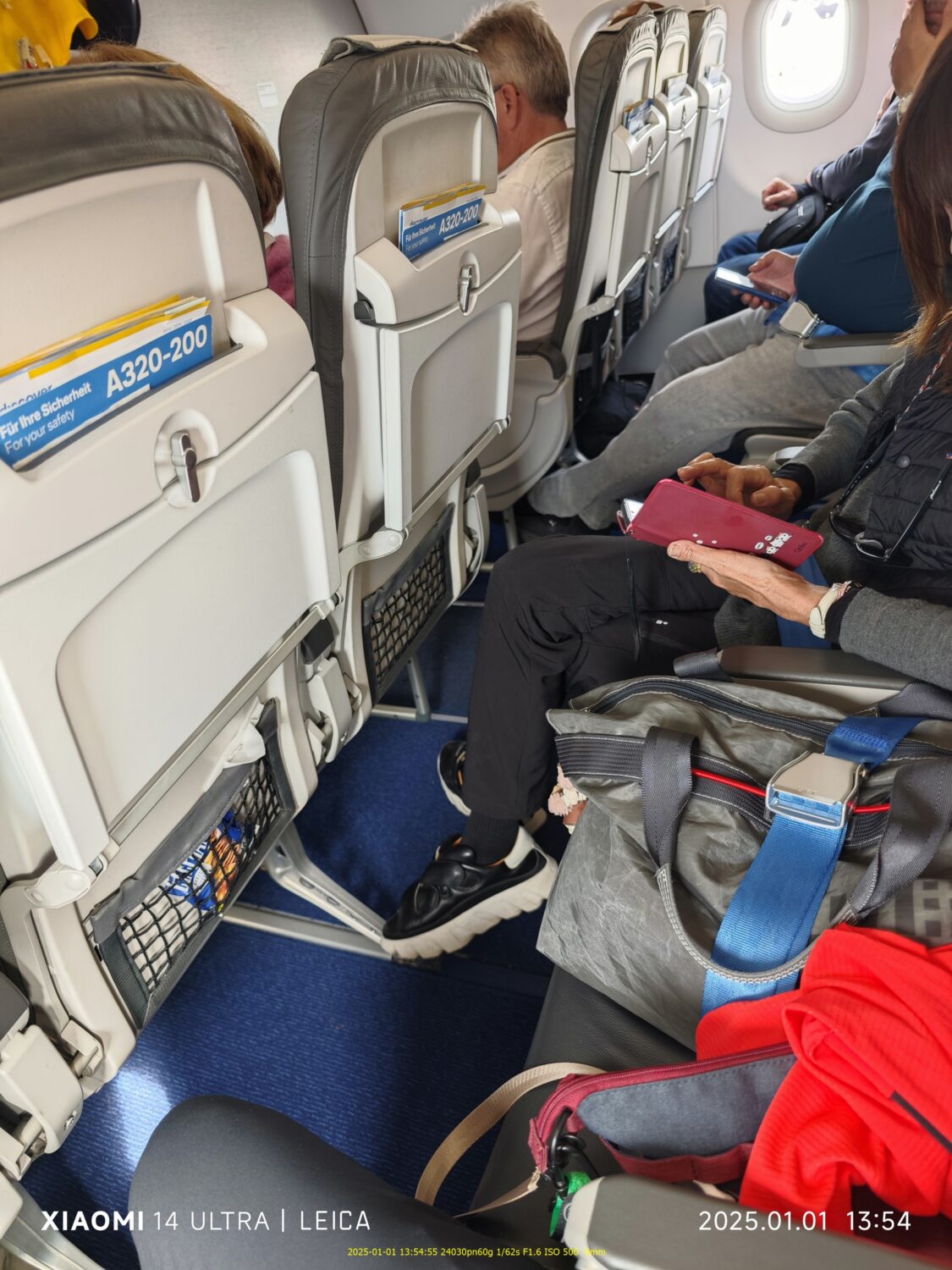 行きと同じく、単にまん中を空席にしただけのビジネス。足元はエコノミより少しだけ広いらしい。