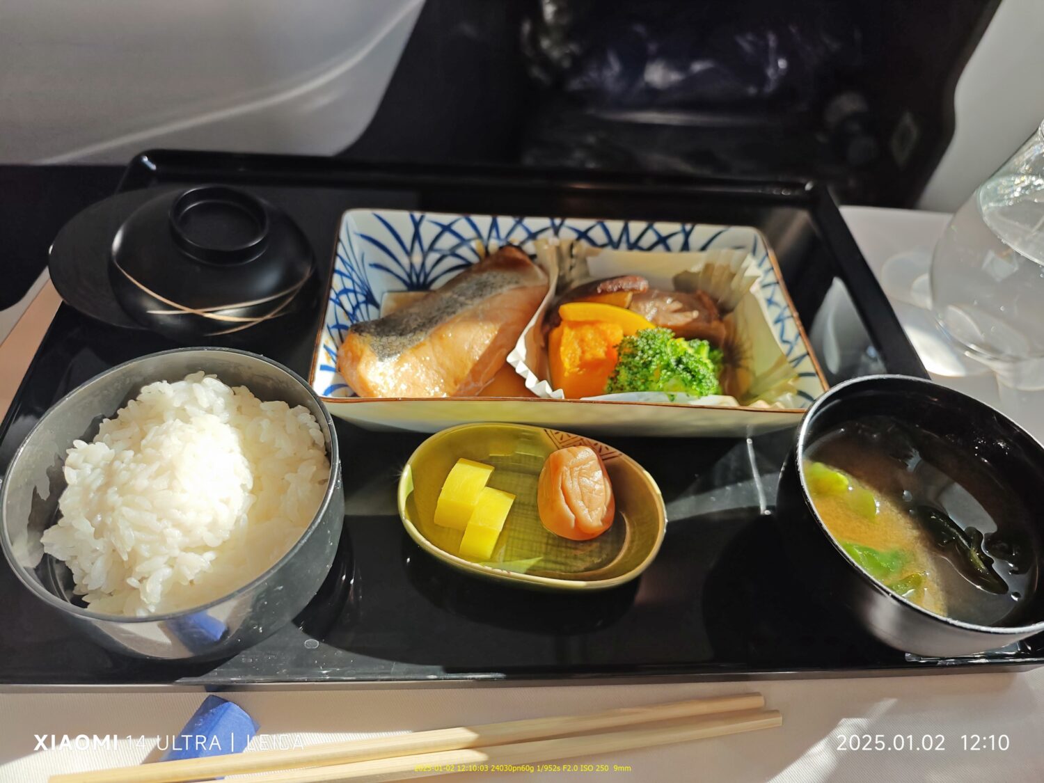 搭乗して2時間後に昼食出てきた。やはり正月は和食やな!