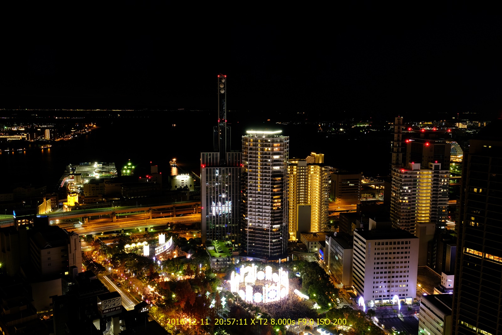 港の景色とルミナリエとでは明るさがかなり違うので、両方ともキレイに写す露出を決めるのは難しい・・・