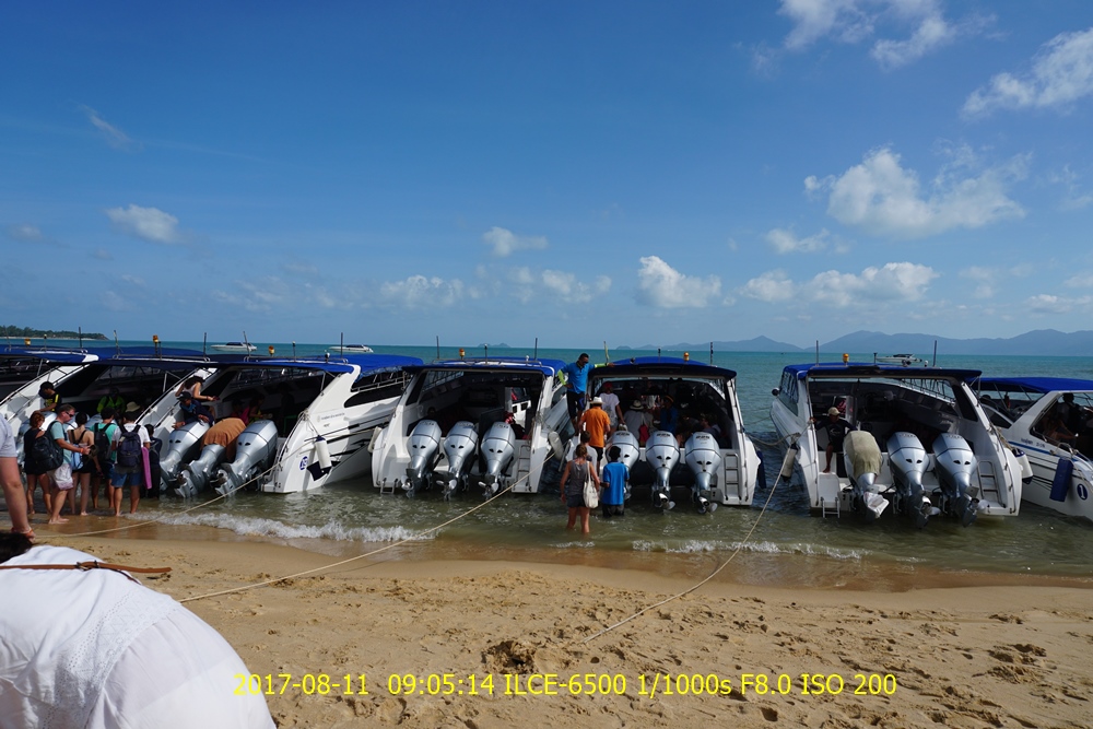 あわてて船に戻り、タオルでフキフキして乾かした後に祈る気持ちで電源ボタン押すも無反応(T_T) 失意のうちに水泳タイム終了し、また一目散にサムイ島へ戻る。