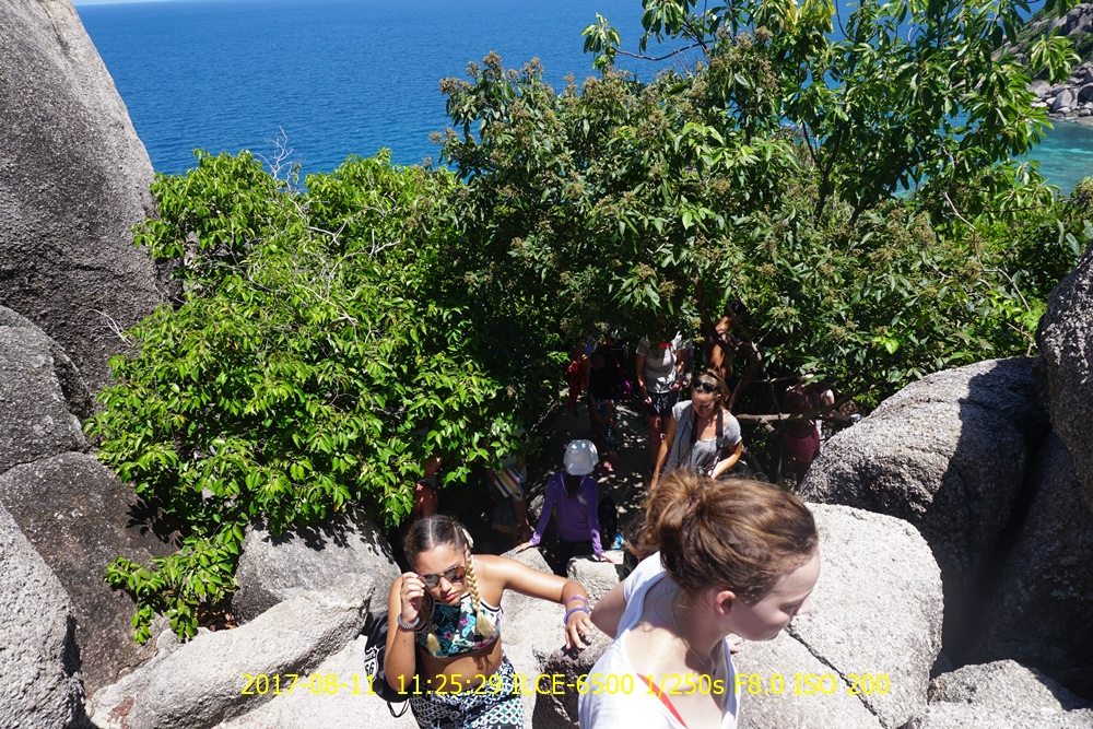 けっこうきつい階段なので、ビーチサンダルではしんどいと思う。我々はウオーターシューズ持参。