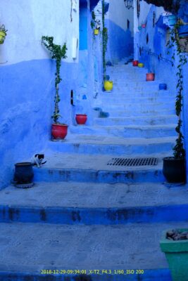 青いシャウエンの街並み。露出やホワイトバランスが難しいな・・・
